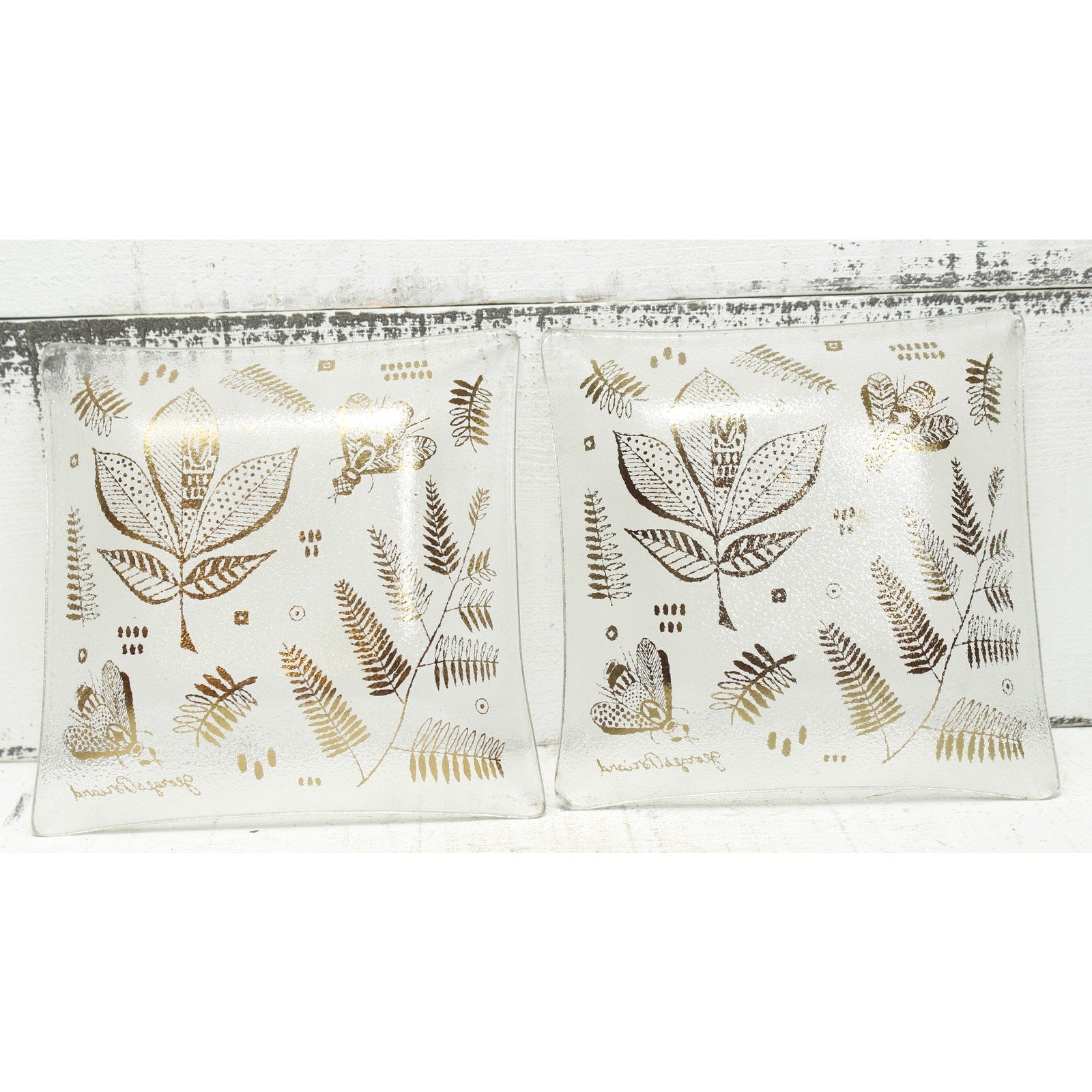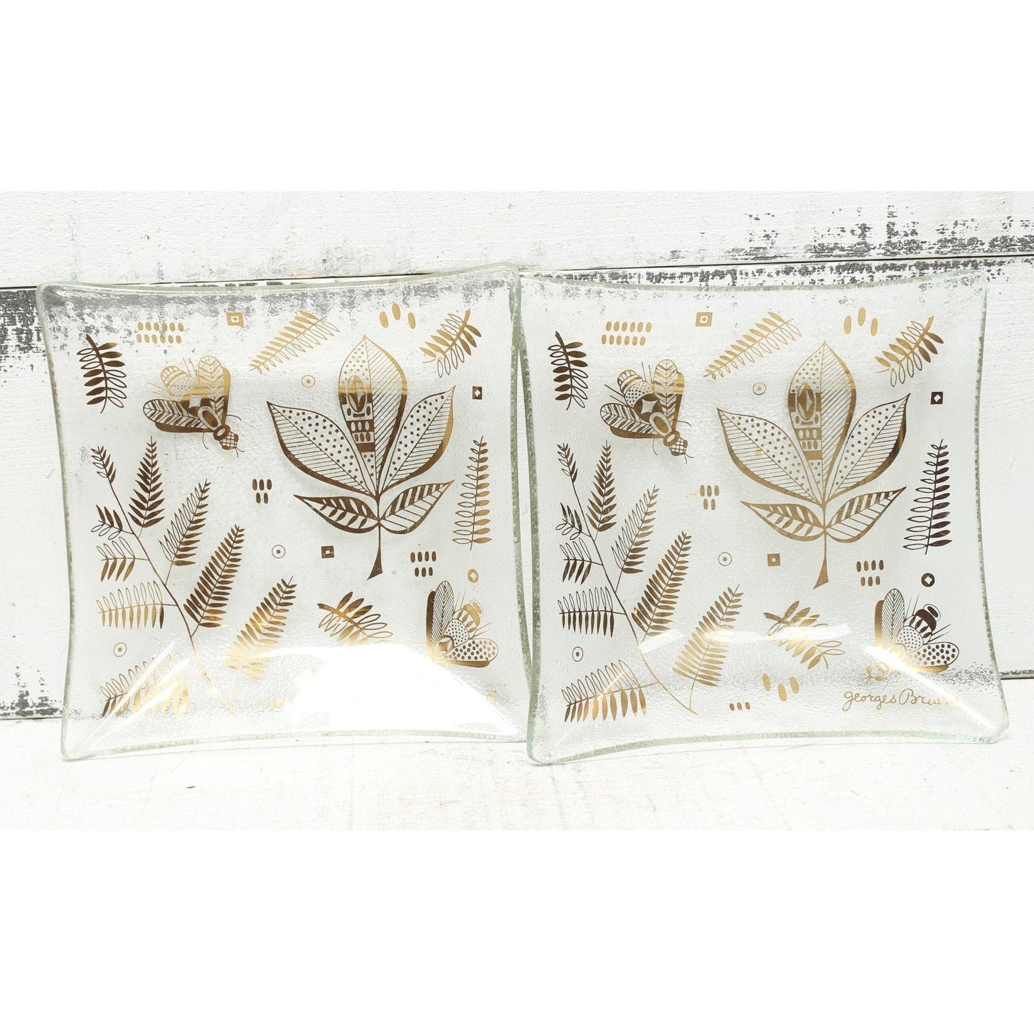 Georges Briard Gold Butterflies Molded Glass Trays Set of 2