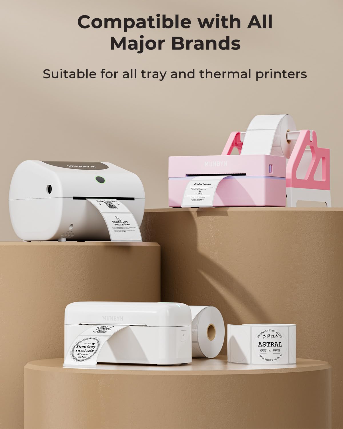 - Wide Compatibility: These thermal printer labels are compatible with Munbyn RW402B, 130B, 941BP, 129B, 941U, 941AP, RW401AP, RW403B, Rollo, Idrpt, Polono, Jiose, K Comer, Labelrange, Offnova, Jadens, Phomemo, Neflaca, Zebra, Mflabel, Arkscan, Besteasy, and other direct thermal printers. (Not compatible with Dymo or Brother printers)